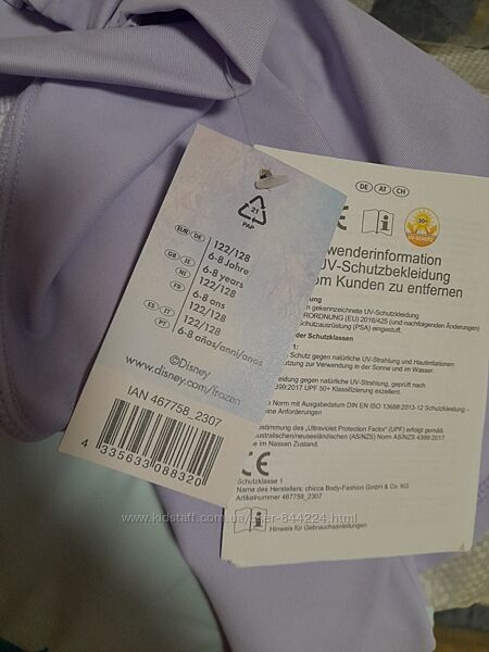 Подробное описание: брак Купальна футболка сонцезахисна уф-50 Frozen Ельза, Німеччина