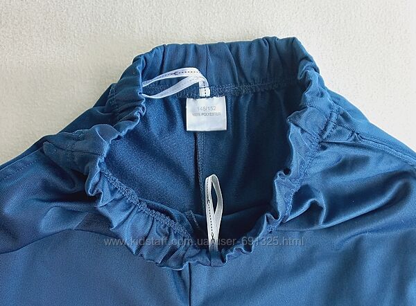 Пропоную світло-сині спортивні штани на дитину 11-12 років. Матеріал - поліестр, щільний еластичний трикотаж. Вживані акуратно, стан відмінний, дефектів немає.Довжина з бокового шва 94 см, з внутрішнього шва 69 см, ширина талії 28 см, тягнеться до 38 см, ширина стегон 45+ см. Ширина штанини зверху 26 см, внизу 17 см. Посадка спереду 26 см, ззаду 32 см.