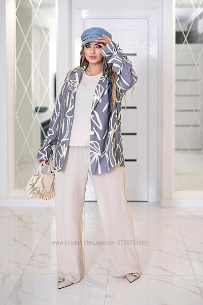 Піджак - вільний, є 2 гудзики, без кишень, на рукавах зав´язки.