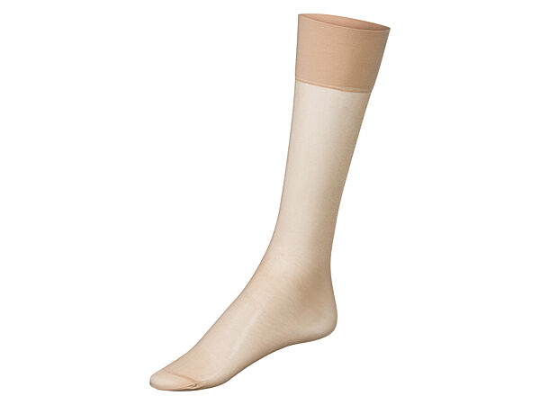 М´які напівпрозорі гольфи з градуйованим стисненням, виготовлені за технологією LYCRA® Leg CARE. Можуть зменшити відчуття втоми та важкості в ногах. М´який, зручний верхній край. Посилений наконечник запобігає зісковзуванню стібків. Ідеальна посадка завдяки попередньо сформованій частині ніжок. Оптимальна посадка та стабільність форми завдяки вмісту високоякісних еластанових волокон LYCRA®. Кількість 2 пари.Заміри: надаємо по запиту