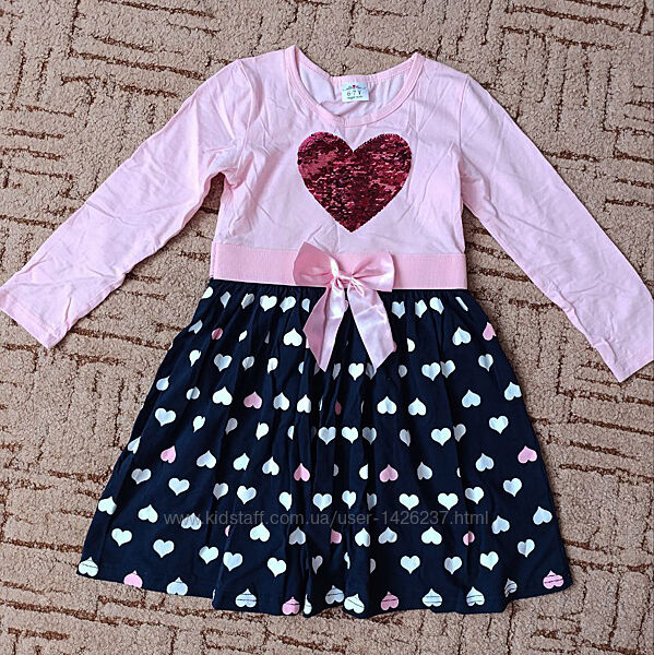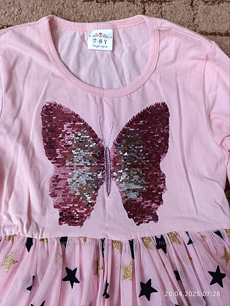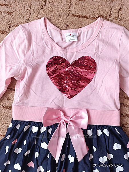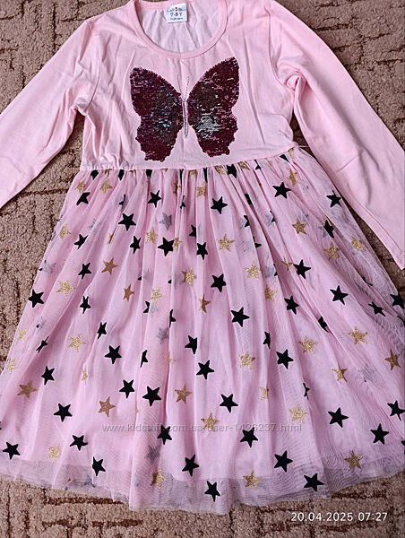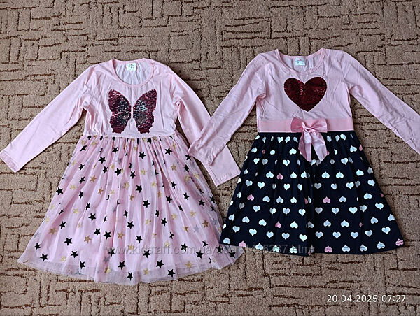 Красиві святкові сукні на дівчинку 5-7 років чудова якість, натуральний хлопок плюс фатин, оздоблені паєтками, що перевертаються і змінюють колір. Рожеве з зірочками і червоне вдягались по 1- 2 рази на свята, рожеве з сердечками не вдягалось ні разу (переросли). Сукні дуже зручні і приємні до тіла. Ціна за одне плаття.Рожеве з метеликом і зірочками по бірці розмір 7-8 (128 см)