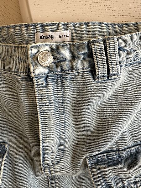Джинсовая голубая короткая юбка карго для девочки Sinsay 164 см