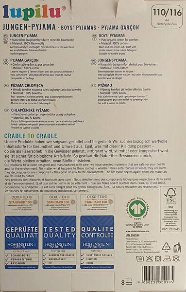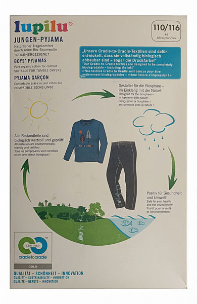 Піжама (домашній костюм) із бавовни від німецького бренду Lupilu (Німеччина). Складається з трикотажного реглану та штанів із зручним еластичним поясом та манжетами знизу. У гардеробі кожної сучасної дитини обов´язково має бути стильна та комфортна піжама, яка забезпечить їй оптимальні умови для міцного сну. Костюм виготовлений з натурального матеріалу, що надійно зберігає оптимальну температуру тіла, дозволяє шкірі дихати, дуже приємний на дотик. Піжама вільного крою не стискає руху, тому в ній комфортно не лише спати, а й ходити по дому. В розмірах до 110 см лонгслив на запах.Заміри: надаємо по запиту