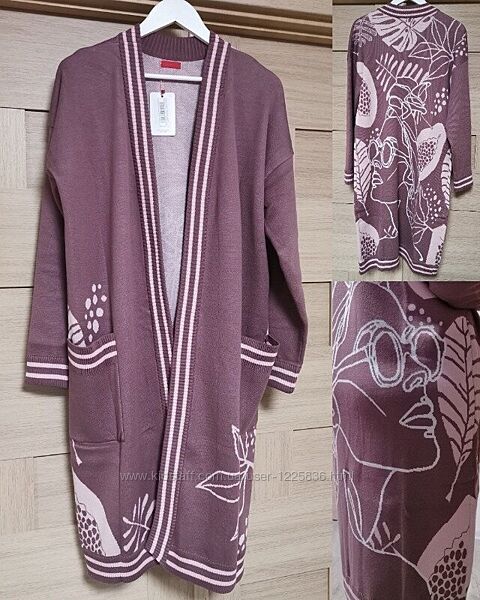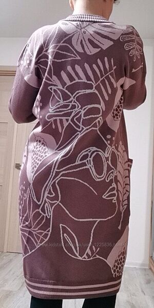 Модный женский длинный вязаный прямого кроя кардиган с вышитым принтом без застежек. Длинные рукава плечи спущенные. Спереди два больших накладных кармана. Края связаны резинкой. Состав 50% хлопок/ 50% акрил Размер универсальный (M-L-XL-XXL) : Длина изделия-106 см Длина рукава внешняя-50 см Длина рукава внутренняя-48 см Полуобхват груди-55 см Полуобхват бедер-55 см Полуобхват талии-54 см Ширина рукава-19 см ---- Доставка : Новая Почта после 100% предоплаты. Без торга, возврата, обмена!