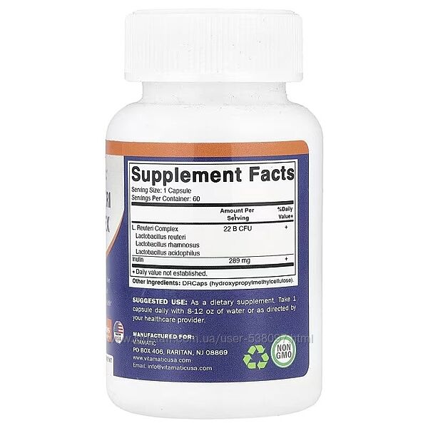 🌞 🍀 Vitamatic Комплекс L.Reuteri лактобактерии реутери 🌞 🍀60 капсул с гипромеллозой DRcaps.