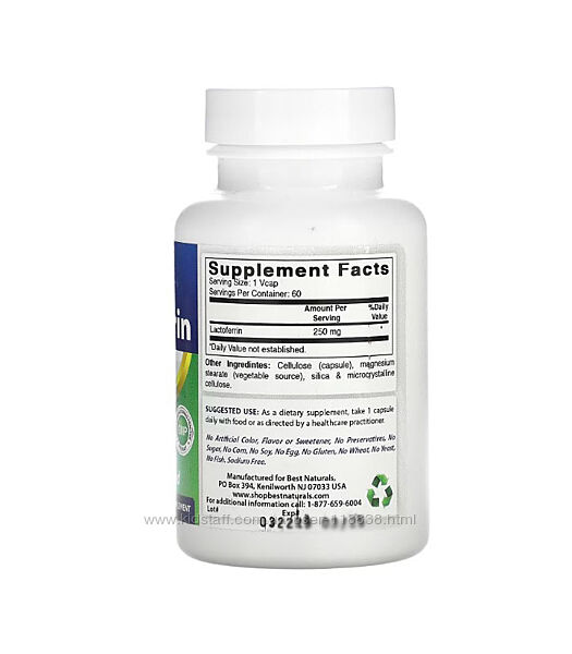 # Best Naturals, Лактоферін, 250 мг, 60 капсулОПИС: