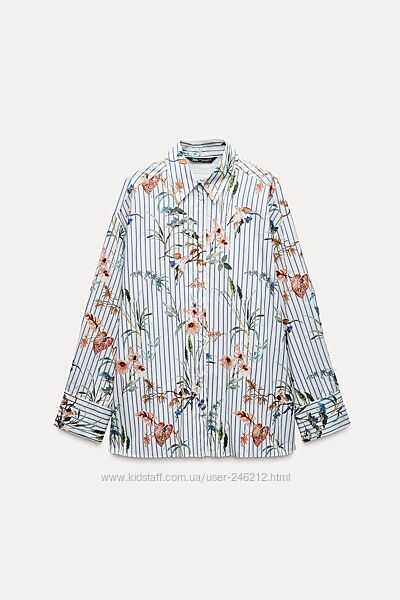 Подробное описание: Смугаста поплінова сорочка ZARA з птахами та квітами M-L