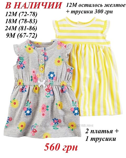 Летние наборы Carter´s (США) для девочки.Цена 560 грн за набор 2 платья + трусики (или платье + песочник + трусики)
