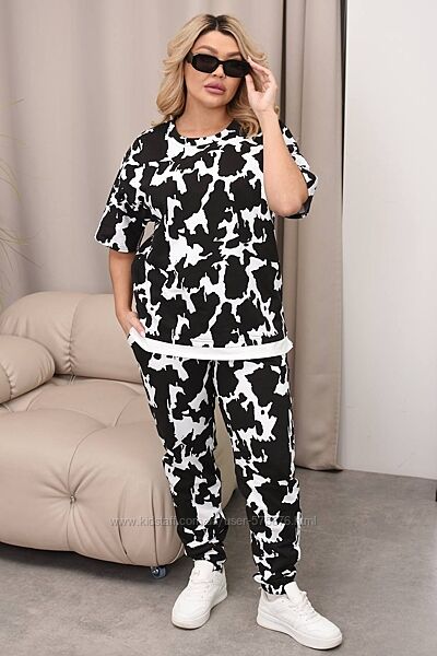 Подробное описание: 50-52, 54-56, 58-60 стильний спортивний костюм двійка двунитка пенє принт