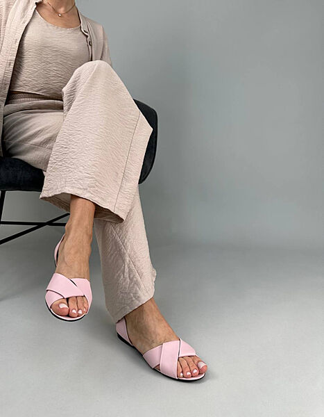 Балетки, натуральна шкіра, з відкритим носком, пудрові