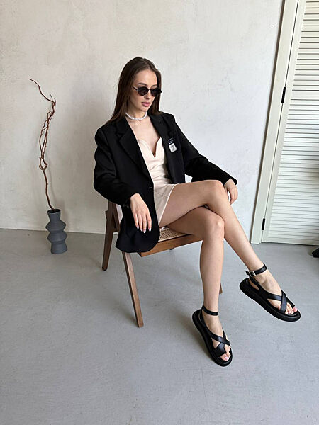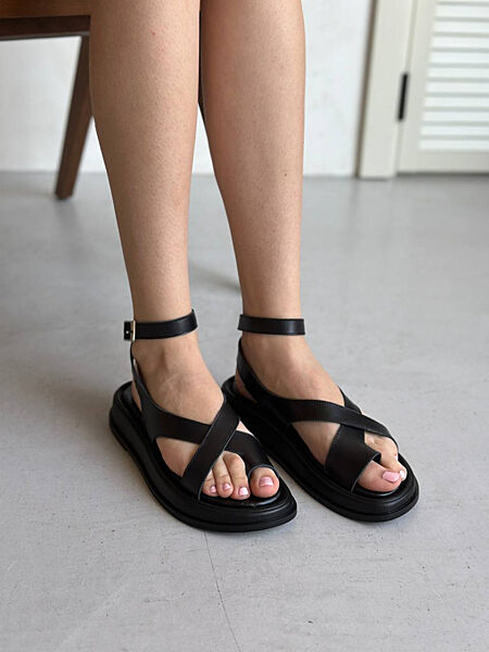 Босоніжки, натуральна шкіра, чорні, на чорній підошві