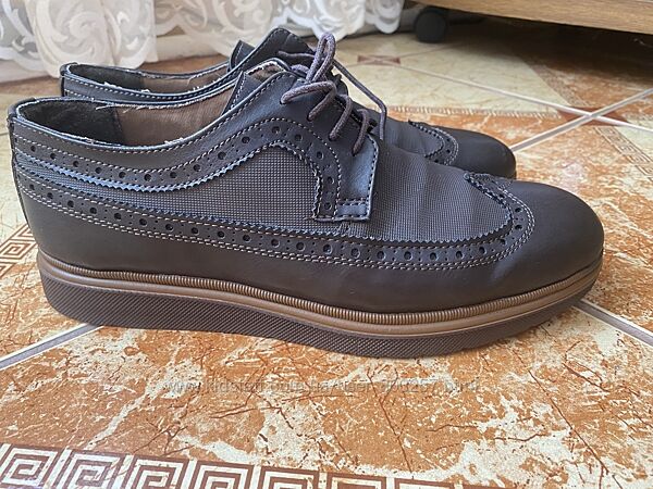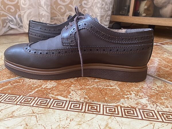 Туфлі чоловічі в ідеальному стані, взувані один раз, коричневий колір,Мʼякі, легкі, не шкіра. Повна довжина устілки від носка 27 см , на етикетці вказано 25,6 см