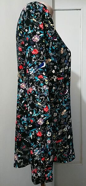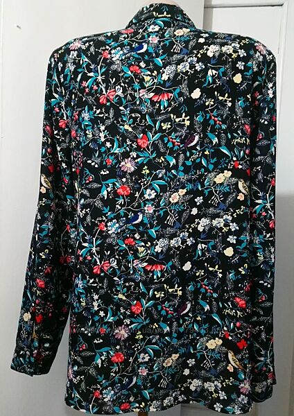 Подробное описание: Блуза сорочка р.48, квітковий принт на чорному тлі, довгі рукави