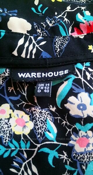 Жіноча блузка р.48, бренд Warehouse, принт – квітковий на чорному фоні, довгі рукави.Прямий крій.