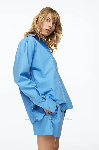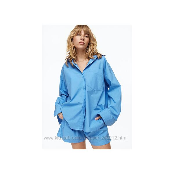 Блакитна поплінова сорочка H&M .Сорочка оверсайз, вільний крій.