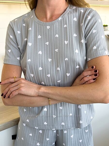Інший одяг для дому та сну нашого магазину, Ви можете переглянути тут: https://www.kidstaff.com.ua/user-anno-1997582/sect...Жіноча піжама(футболка+шорти) “Cloudy Heart”