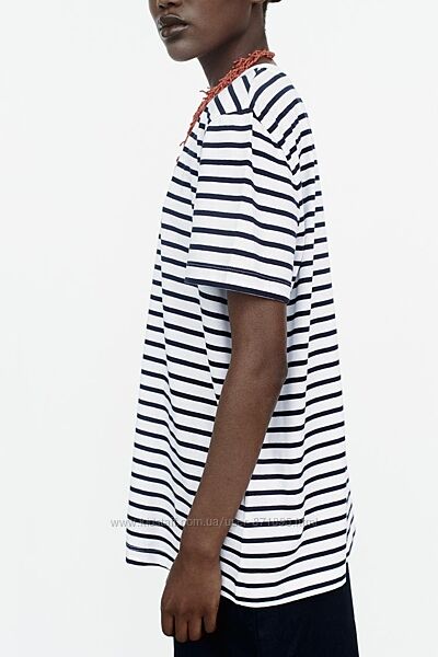Футболка Zara оригінал з офіційного сайту.Смужки темно-синього кольору