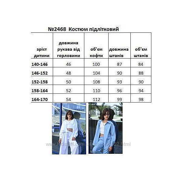 | Рост | 140 см, 146 см, 152 см, 158 см, 164 см, 170 см |