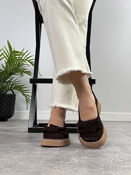 Туфлі Roses Колір : шоколад Матеріал : Натуральна замша Розміри : 36-41 (в розмір) Висота підошви : 3,5 см 36 - 23,5 см 37 - 24,0 см 38 - 24.5 см 39 - 25,5 см 40 - 26 см 41 - 26,5 см