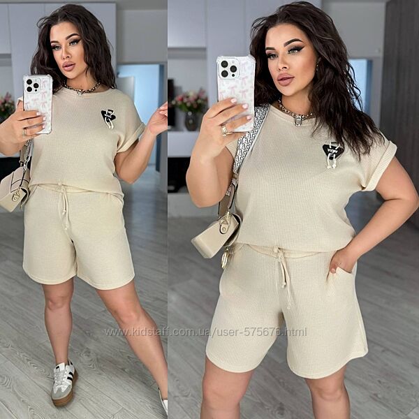 Подробное описание: р.48 до 60р. Костюм футболка та шорти з трикотажу вафелька