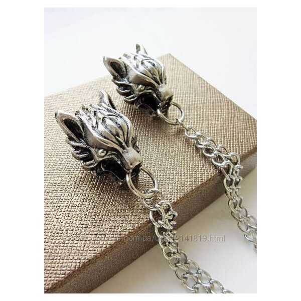Размер каждой головы волка 2,5 х 2 см, длина цепочек 9 и 12 см, застежка пин.Цвет: серебро