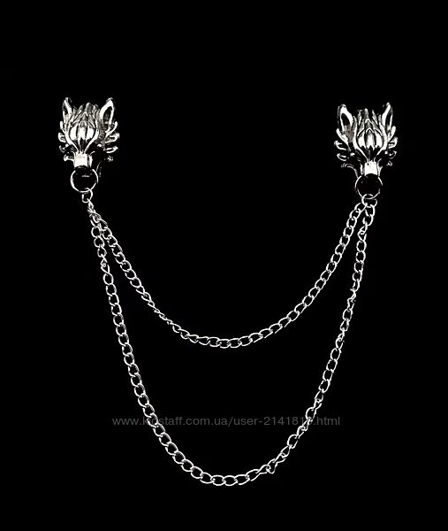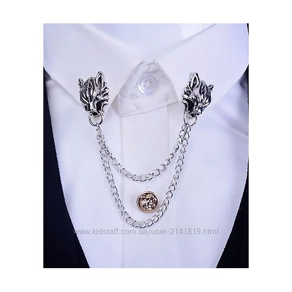 Подробное описание: Двойная брошь шатлен волки в винтажном стиле, брошь на воротник волки в сер