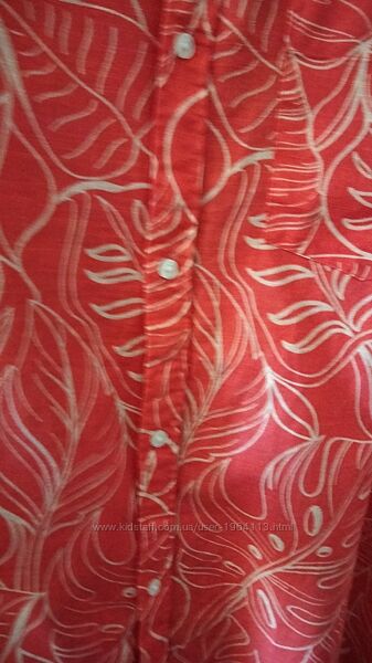 Нова стильна та яскрава сорочка з бавовни від f&f. Розміри 2XL-3XL. Короткий рукав, світло-червоного кольору з тропічним принтом. Спереду на гудзиках, відкладний ворот, кішенька на грудях.Сорочка нова з бірками.