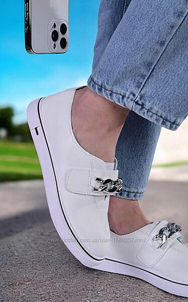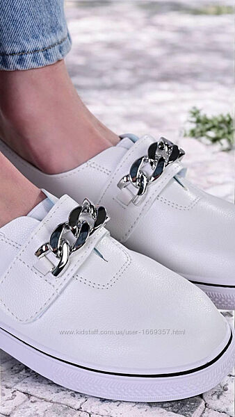 Застежки-липучки позволяют быстро и легко обувать и снимать кеды, а также регулировать плотность посадки на ноге. Легкая и гибкая подошва обеспечивает комфорт при ходьбе в течение всего дня. Эти женские белые кеды на липучках станут отличным выбором для активных и ценящих удобство девушек. Декоративная цепочка добавляет модели оригинальности.