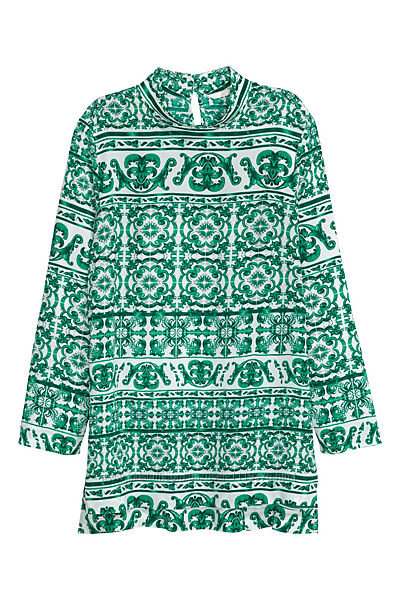 Прямая блузка ткани с набивным рисунком.