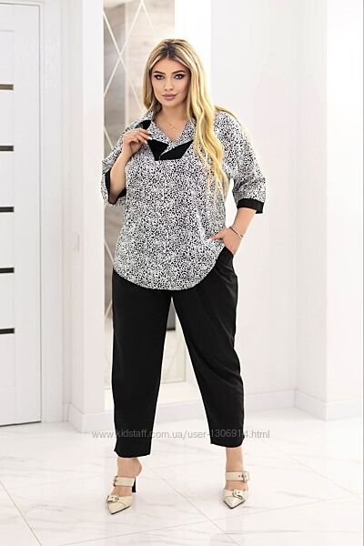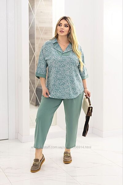 Чудовий костюм який надасть вам свіжості, жіночності та гарного настрою на весь день. Блуза вільня дуже гарним комірцем.