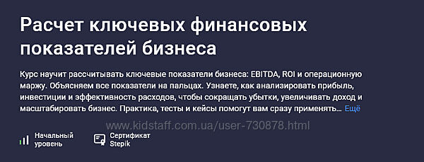 Мария Пархоменко [Stepik] Расчет ключевых финансовых показателей бизнеса (2025)Курс научит рассчитывать ключевые показатели бизнеса: EBITDA, ROI и операционную маржу.