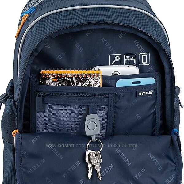 Передня кишеня з органайзером для дрібниць, кишенею з плюшем для телефону та знімною ключницею.