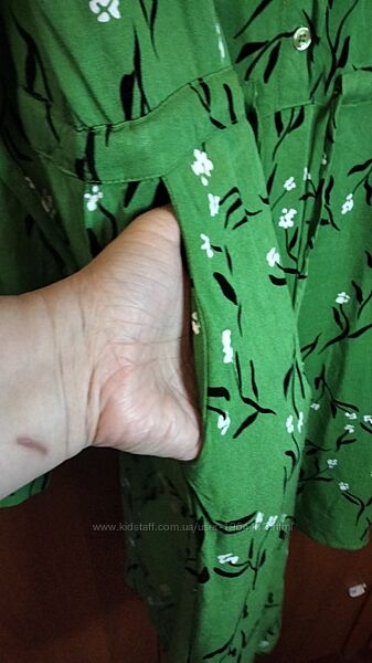 Неймовірна весняна сукня від Nanso. В ідеальному стані. 100%віскоза. На гудзиках до талії. По талії на пряску-зав´язках. Є бокові кишені. Довгий рукав. Розмір XL-XXL. Орієнтуйтесь по замірахН/о груди- 52см
