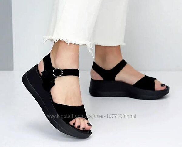 Подробное описание: Босоніжки чорні замшеві натуральні на платформі