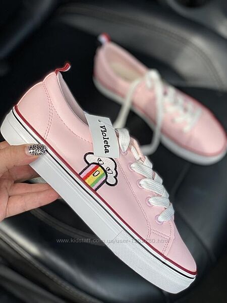 Новые женские кеды нежно-розового цвета из экокожи. Легкие и удобные, идеально подходят для весенних и летних образов. Мягкая стелька обеспечивает комфорт на каждый день. Материал: экокожа Цвет: розовый (пастельный тон) Состояние: совершенно новые, не носились с биркой Размеры 37 (длина стельки 23,5 см) 38 (длина стельки 24 см) 41 (длина стельки 25.5 – 26 см) Отправляю почти сразу после оформления заказа! Пишите – с радостью отвечу на все вопросы!