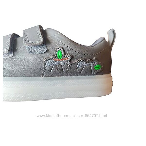 Кроссовки детские Clarks (размер 22,5, EU23)Удобные кроссовки на липучках изготовлены из качественной, мягкой натуральной кожи с аппликацией муравьев. Подкладка изготовлена из текстильного материала Agion, который обладает антибактериальными свойствами.