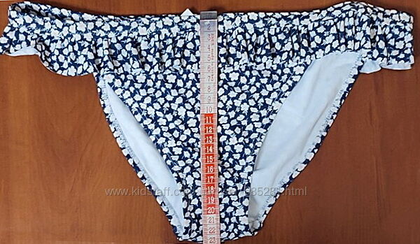 стильний купальник з принтом у дрібну квіточку та оборочками, повністю на підкладці, плавки класичні прикрашені оборочкою, бюстгальтер з м´якими чашками на кісточках, застібається на золотистий замочок, бретельки з оригінальними оборочками регулюються по довжині.