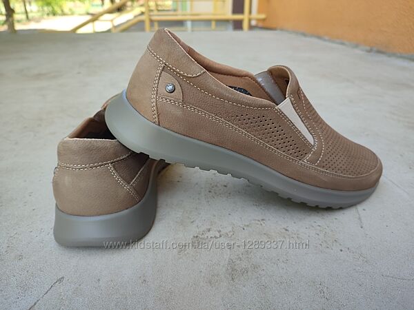 Мужские летние туфли на резинке Clubshoes бежевые из перфорированной мягкой натуральной кожи (нубук) на облегченной подошве из EVA. Выполнены полностью из натуральных материалов. Обувь качественная, легкая, мягкая, очень удобная.
