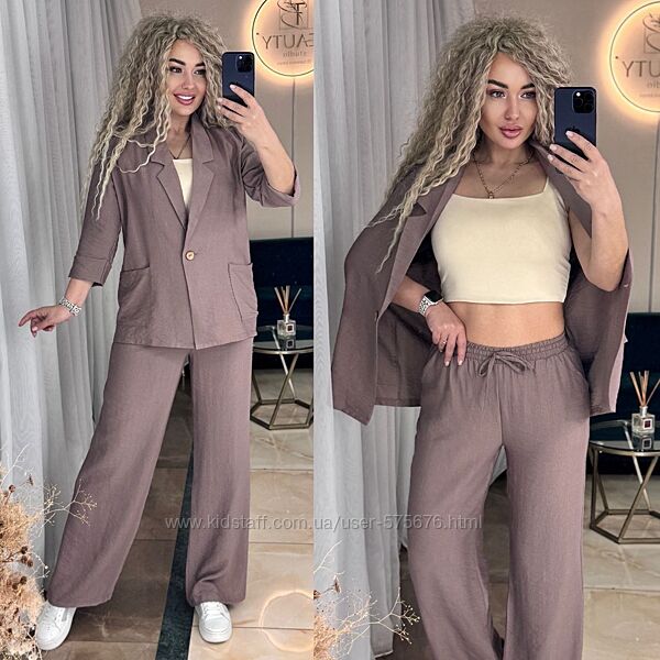 Хітова новинка сезону: костюм піджак+брюки в неймовірних кольорахПіджак має накладні кишені, рукав 7/8 з підворотом, застібається на гудзик