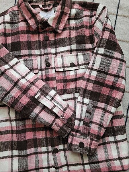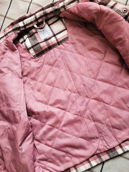 Стильне пальто фірми Lindex (купувала в Чехії); рожево-коричнева клітинка; застібується на кнопки; 4 кишені; утеплене (тонкий шар синтепону та стьобана підкладка). Дуже гарно сидить на дитині. Тепле.Склад: верх – 79% поліестр, 19% акрил, 1% поліамід, 1% вовна; підкладка, утеплювач – 100% поліестр.