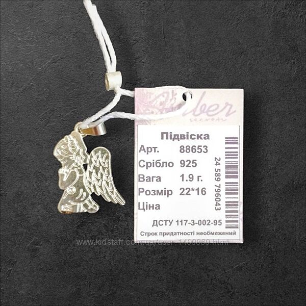 Новый серебряный кулон в виде ангела. 925 проба.