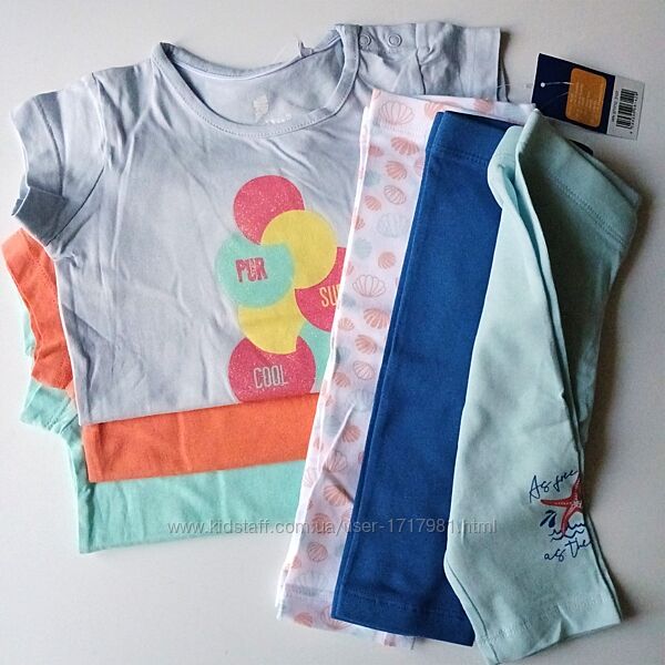 Указана цена за весь набор из шести предметов (3 шт футболки + 3 шт лосины-капри).Размер на бирке: 12-24 мес (86-92 см).