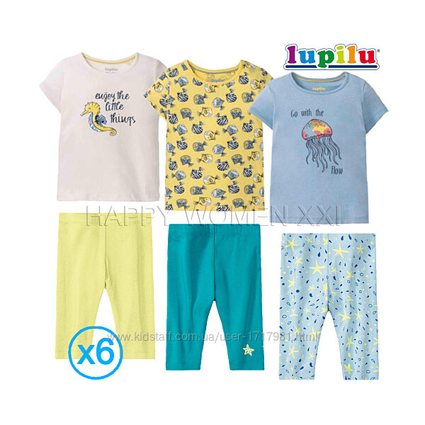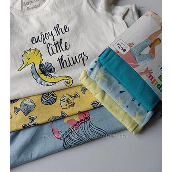 Указана цена за весь набор из шести предметов (3 шт футболки + 3 шт лосины-капри).Размер на бирке: 12-24 мес (86-92 см).
