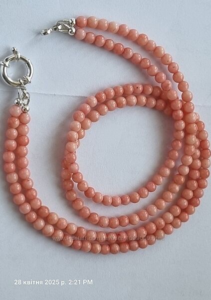 Браслет з натуральних рожевих коралів, довжина - 37 см , виготовлене італійським майстром . Від нього неможливо відірвати погляд - це магія!Діаметр кульки - 4 мм, замок круглий карабін із срібла 925 проби.