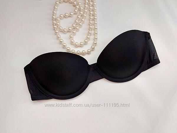 Бюстгальтер балконет H&M без бретелек из микрофибры и сетки с формованными чашечками с легким наполнителем, которые моделируют бюст и обеспечивают хорошую поддержку. Такая модель strapless (без бретель) точно пригодится поклонницам соблазнительных нарядов с открытыми плечами. Формованная чашка на косточке и тонком поролоне приподнимает грудь, обеспечивая нужный уровень поддержки, образует красивое, эффектное декольте! Широкая застежка на крючки сзади. Есть петли для бретелей, бретелей в комплекте нет. Размер 70A. Смотрите замеры чашки на фото. Длина пояса в спокойном состоянии 60см, тянется 74см. Сток. Без бумажных бирок. *** Оплата на карту Приватбанка. Доставка Новой почтой, Укрпочтой. Оплата за доставку - при получении. Возврата и обмена нет.
