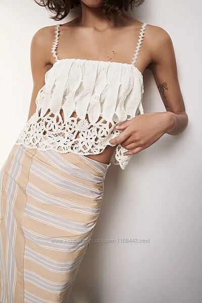 Топ комбинированный Zara размер L Топ новый, с этикеткой, оригинал. Состав: верх - 100% коттон, вязание - 87% коттон, 13% полиамид, подкладка - 100% коттон. Укороченный топ с квадратным вырезом и тонкими бретелями. Подкладка, эластичный низ в тон. Бретели не эластичные. Замеры: размер L - длина топа 28 см, ширина 40 см, высота бретели 20.5 см Перешлю Новой почтой за счет покупателя. Обмена и возврата нет.