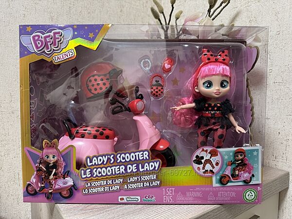 В наборі: лялька, скутер, аксесуари, наліпки.