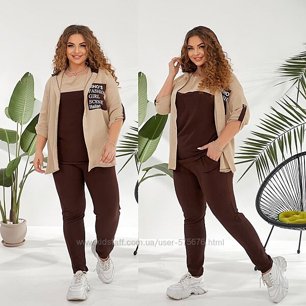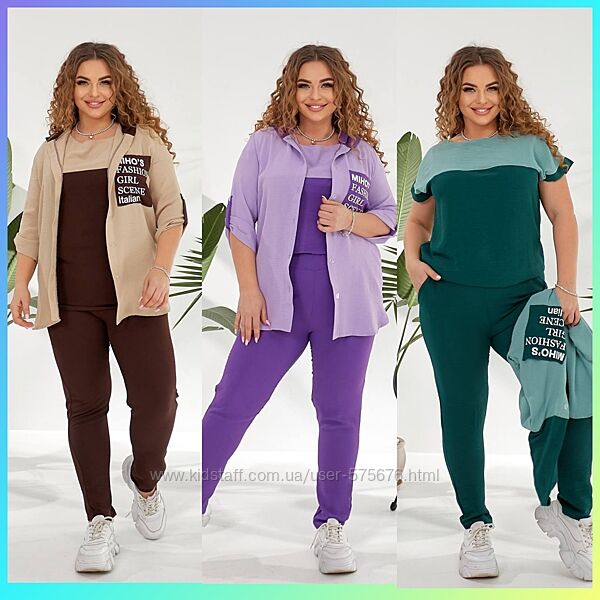 48-50, 52-54, 56-58 Костюм трійка сорочка, футболка, штани креп жатий