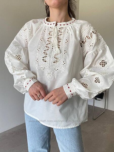 Подробное описание: Жіноча вишиванка сучасна мережка блуза вишита сорочка біла з мереживом