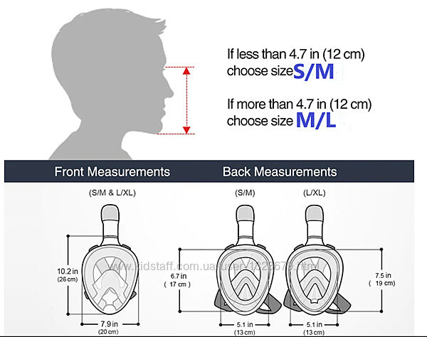 ЯКИЙ РОЗМІР МАСКИ EASYBREATH ВИБРАТИ? 3 розміри маски Easybreath відповідають формі обличчя 90% користувачів. Для дітей від 6 до 10 років виберіть розмір XS. Для дітей віком від 10 років, для маленьких осіб вибирайте розмір S/M, для великих осіб – M/L.